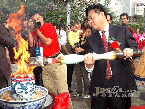 上午10點,圣火傳遞隊分別由1名主火炬手、兩名副火炬手,以及50名護衛(wèi)手組成,共有陶瓷學院學生、陶瓷職業(yè)技術(shù)學院學生、陶瓷股份公司員工等來自陶瓷業(yè)有關(guān)的學校和企業(yè)的幾個方隊組成。圣火傳遞途徑御窯場佑陶靈祠-圣山酒店-地稅局-西客站-“三圣公祭”主會場的中國瓷園。